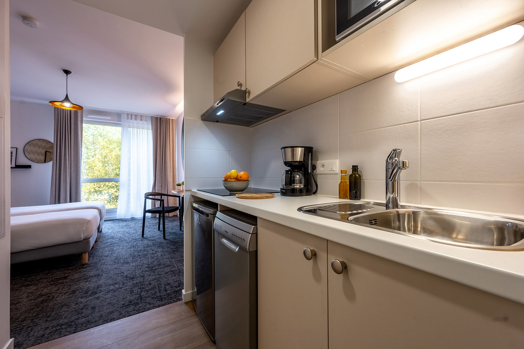 L’Aparthotel di Pessac, situato vicino all’università, dispone di alloggi moderni e funzionali, progettati per garantire comfort e indipendenza durante tutto il vostro soggiorno. Gli ospiti possono inoltre usufruire di una colazione in loco per iniziare bene la giornata. Dal grazioso monolocale per due persone all’appartamento più spazioso, in grado di ospitare fino a quattro persone, ogni sistemazione è dotata di bagno privato e di un angolo cottura completamente attrezzato. Godetevi una notte tranquilla nella vostra camera e approfittate dei numerosi servizi offerti dall’Apparthotel La Boëtie Bordeaux Pessac per rendere la vostra esperienza ancora più piacevole: piscina coperta riscaldata, palestra… Per le vostre esigenze pratiche, è previsto un parcheggio sicuro e un’area dedicata alle biciclette, per facilitare gli spostamenti durante il soggiorno, dall’arrivo al check-out.